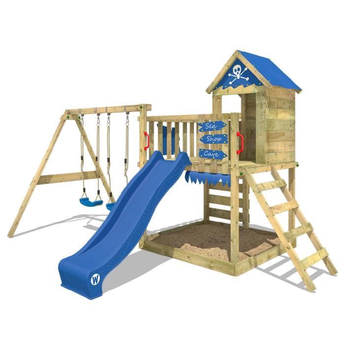 7 avis pour Portique Enfant – Aire de Jeux Smart Cave – 2 Agrès WICKEY Balançoire